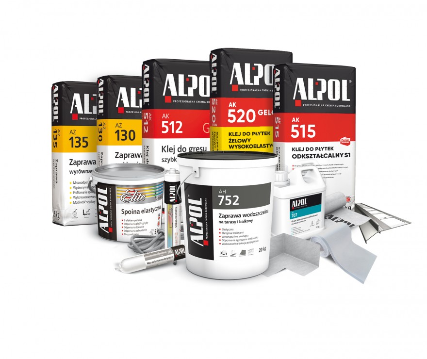 ALPOL AH 752 (Rodzaj CM, typ O1P) nakładana co najmniej w 2 warstwach. Jej parametry są deklarowane zgodnie z normą PN-EN 14891:2012. Jest przeznaczona do wykonywania podpłytkowych uszczelnień m.in. tarasów, balkonów, cokołów oraz montażu dodatkowych akcesoriów uszczelniających (taśm uszczelniających, narożników, mankietów). Wzmocniona włóknami polimerowymi nie wymaga dodatkowego zbrojenia. Wykazuje dużą przyczepność do podłoża, wodoszczelność, elastyczność, odporność na powstawanie rys w podłożu oraz działanie zmiennych warunków atmosferycznych, czyli wszystkie cechy niezbędne dla tego typu produktu. Po związaniu tworzy powierzchnię zapewniającą prawidłową przyczepność dla zapraw klejowych.
